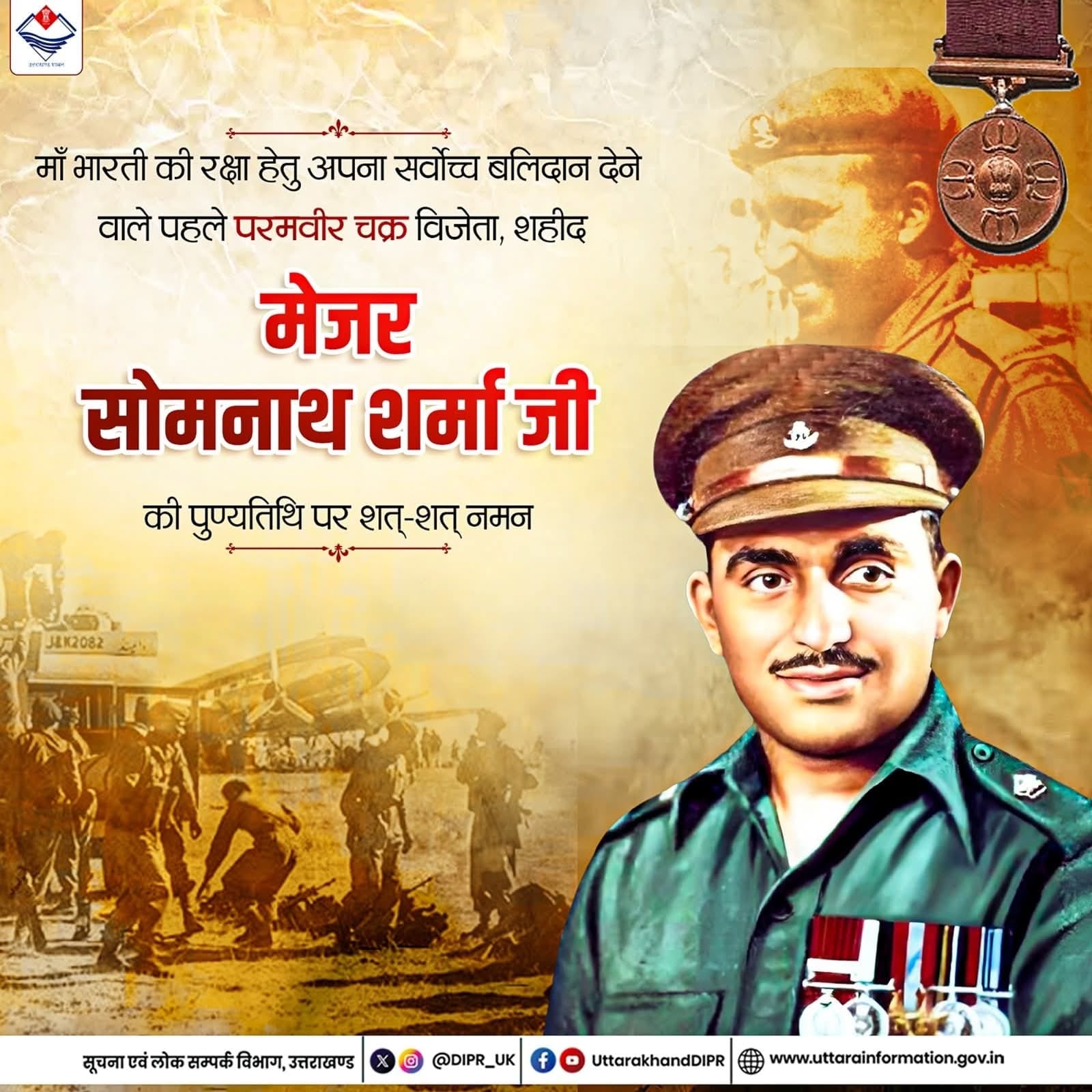 1947 के भारत-पाक युद्ध में अदम्य साहस एवं शौर्य के प्रतीक परमवीर चक्र से अलंकृत मेजर सोमनाथ शर्मा जी की पुण्यतिथि पर कोटिशः नमन।